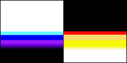 When viewed through a prism, the orientation of a light–dark boundary with respect to the prism's axis is significant. With white above a dark boundary, we observe the light extending a blue-violet edge into the dark area; whereas dark above a light boundary results in a red-yellow edge extending into the light area.