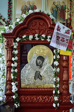 The Theotokos of Buchyn is an icon which allegedly appeared in the 18th century[1] and honored as miraculous by the Orthodox Christians of Volyn, Rivne (Ukraine), and Pinsk (Belarus) Polesye. The icon measures 65x80 cm.
