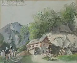 Therese Holbein lived in her hometown of Graz and from around 1814 until her death, she lived in Vienna.[1] She remained unmarried, lived a secluded life and devoted herself to her art until old age. Only a few of her works were made public during her lifetime. These included a series of 30 landscape etchings, which were mainly created in 1812–1813.[2] In 1855 she presented two etchings entitled Waldpartie at the 64th exhibition of the Austrian Art Association. She died in Vienna in 1859.[3][4]