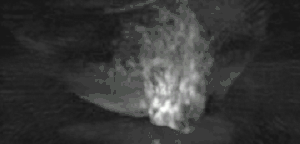 Microwaves have also been used to form 3D thermoacoustic images of the human breast. One of the first devices to do so is depicted in Fig. 10. It consisted of an array of eight waveguides, which directed microwave energy into the breast. A transducer array was rotated in synchrony with the waveguides in order to acquire sufficient data to reconstruct the internal structures of the breast. Figure 11 shows an animation of the typical glandular tissue pattern in a normal breast.
