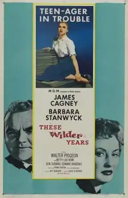 These Wilder Years is a 1956 American drama film directed by Roy Rowland and starring James Cagney, Barbara Stanwyck and Walter Pidgeon. It is the story of a businessman who tries to find the illegitimate son he gave up to an orphanage many years ago. The film marked the first and only onscreen pairing of Hollywood stars Cagney and Stanwyck.