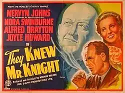 They Knew Mr. Knight is a 1946 British drama film directed by Norman Walker and starring Mervyn Johns, Nora Swinburne and Joyce Howard.[1] It was based on a 1934 novel of the same title by Dorothy Whipple. A man is sentenced to twelve months in Lincoln jail following his involvement in a share scam, plunging himself and his family into despair. However, by the time of his release he is able to face his uncertain future with fortitude.
