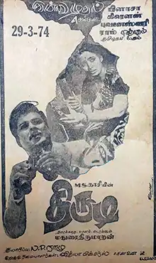 Thirudi (transl. Lady thief) is a 1974 Indian Tamil-language film written and directed by Madurai Thirumaran, from a story by Mahendran.[2] The film stars Jaishankar as a pathological liar and K. R. Vijaya as the titular thief. It was released on 29 March 1974,[3] and became a success.[4]