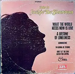 This Is Jackie DeShannon is an LP album by Jackie DeShannon, released by Imperial Records under catalog number LP-9286 as a monophonic recording in 1965, and later in stereo under catalog number LP-12286 the same year. The cover was credited to Woody Woodward and the photography to Ivan Nagy.