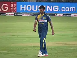 Narangoda Liyanaarachchige Thisara Chirantha Perera (Sinhala: තිසර පෙරේරා; born 3 April 1989), popularly known as Thisara Perera, is a former Sri Lankan international cricketer who played all formats for the national team. He also captained the team in limited-overs formats.[1] Domestically he plays for Sri Lanka Army Sports Club in the Premier Trophy and Premier Limited-Overs Tournament, and the Jaffna Stallions in the Lanka Premier League. Perera has played franchise T20 cricket all around the world for numerous leagues. Primarily a bowling all-rounder, he is an aggressive left-handed batsman who can hit big sixes in death overs and is a useful right-arm medium-fast bowler.