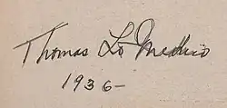 Thomas Gaetano LoMedico (July 11, 1904 – November 29, 1985) was an American sculptor and medalist.[4] Born and raised in New York City, his sculpture won awards in the 1930s and 1940s and is now in several American museum collections.
