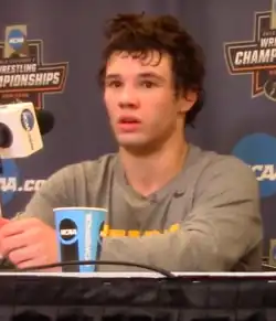 As a sophomore ('14–'15), he compiled 31 wins and six losses, a 15–2 record in dual meets, a perfect 9–0 in Big Ten duals and Midlands runner-up honors.[11][3] In the postseason, he claimed runner-up honors at the Big Ten Championships to Ohio State's Nathan Tomasello[12] and became an All-American with a fourth-place finish at the NCAA's.[13]