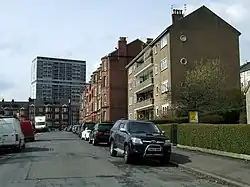 Thornwood's boundaries are not precisely defined but could be seen as the territory between Crow Road, Thornwood Drive and Dumbarton Road, a small but densely populated area dominated by four-storey tenements.[1][2] It was part of the burgh of Partick until the absorption of that burgh into the expanding city of Glasgow in 1912.[3][4] Most local amenities can be found in Partick or Broomhill, including a retail park, Gartnavel General Hospital, the University of Glasgow and Byres Road, popular for socialising, within 1 mile (1.6 km) distance, although Thornwood does have its own selection of small shops and bars.[5]