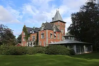 Thorskog House (Swedish: Thorskogs slott) is a manor house in Bohuslän, Sweden. It is located in Lilla Edet Municipality. It was built in 1892 in accordance with the plans of architect Carl Fahlström (1854-1920). [1]