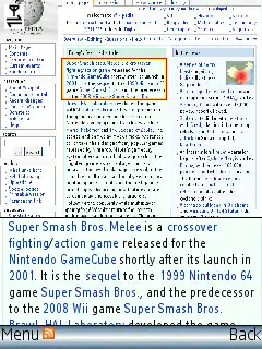 ThunderHawk allows browsing in the combined overview and magnified view of a web page. The split screen magnifier makes it easier to browse the Web pages in their original format on the small screen of a mobile device. The floating magnifier over the overview area, available with both Zoom-In and Zoom-Out mode aids in finding information and navigating the Web sites. Bitstream holds the patent rights for this split-screen technology.