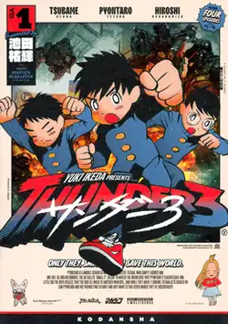 Thunder 3 (Japanese: サンダー3, Hepburn: Sandā Surī) is a Japanese manga series written and illustrated by Yuki Ikeda. It has been serialized in Kodansha's shōnen manga magazine Monthly Shōnen Magazine since May 2022.