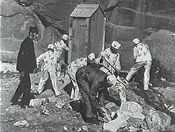 Shooting took place in October and November 1910 Lithgow and Hartley Vale, with extras recruited from local miners who were then on strike.[20] Forsyth told the press Lithgow was chosen due to its resemblance to the area where Thunderbolt operated. The scene depicting the death of Thunderbolt was shot near the second junction bridge, on tho road from Bowenfels to Rydal.[2] One scene was shot at the Gap, ten miles from Lithgow.[21] Gavin later recalled: