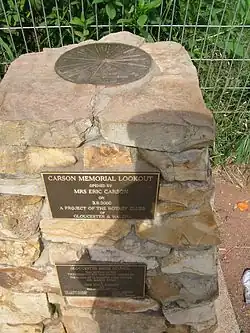 Eric Carson (1913–99), a Gloucester sawmiller and road builder, carved the first road through the ranges to bring out the magnificent hardwood from the forests on the Great Divide. After Carson spent many years trying to persuade local politicians that a road should be built across the Divide from Gloucester to Nowendoc, he went ahead and built it. Carving the 32 km (20 mi) route out of some of the steepest and most rugged countryside in the state was fraught with danger, but by 1961 it was complete.[7] Carson's Lookout, which commemorates his work is between Gloucester and Nowendoc, is a stop off point for the enjoyment of panoramic views.