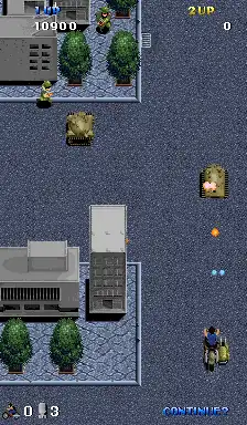 Players control a motorcycle equipped with sidecar cannons and backed up by a B-7 bomber.[5] There are four levels in the game: an unnamed city, the terrorists' military base, the woodland regions, and the fortress containing the nuclear power plant.[6] Bosses include a submarine along with other screen-filling enemies.