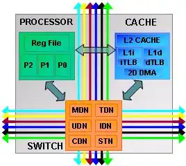 Tile processors[1] for computer hardware, are multi-core or manycore chips that contain one-dimensional, or more commonly, two-dimensional arrays of identical tiles. Each tile comprises a compute unit (or a processing engine or CPU), caches and a switch. Tiles can be viewed as adding a switch to each core, where a core comprises a compute unit and caches.