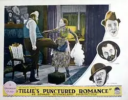 Tillie's Punctured Romance is a 1928 American silent circus comedy film starring W. C. Fields as a ringmaster and Louise Fazenda as a runaway.[1] Written by Monte Brice and Keene Thompson and directed by A. Edward Sutherland, this film has nothing to do with the 1914 Charlie Chaplin film aside from sharing the same title, but Chester Conklin and Mack Swain appear in both films.
