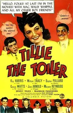 Tillie the Toiler is a 1941 American comedy film directed by Sidney Salkow and starring Kay Harris, William Tracy, and Daphne Pollard. The screenplay was written by Karen DeWolf and Francis Martin, from DeWolf's story, which in turn was based on the comic strip of the same name by Russ Westover.[2] It was the second film based on the comic strip, and the first sound picture, the other being the 1927 silent film also titled Tillie the Toiler.