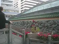 The Tin Hau Temple was probably erected at this location in 1864. It originated from a small temple in the present Kwun Chung Market area, that was later moved to the present site by boat people and villagers of Yau Ma Tei.[4] Originally facing the Yau Ma Tei waterfront, it is now almost three kilometers from the shore, as a consequence of land reclamation.[5] The Kung Sor and Hsu Yuen were used until 1955 as a venue for a free school teaching the boat and land people.[2]