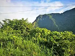 ![]() La Bella Durmiente, a small massif in Tingo María National Park, viewed from the town of Tingo María | |