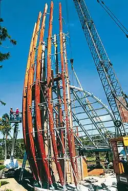 However, based on a competition for designing the centre dated to 1991, the work was assigned to Renzo Piano and it was constructed between 1993 and 1998.[6] The inaugural cultural director was Emmanual Kaserhou and the museum curator Susan Cochrane.[1] The project was quite controversial because of its luxurious, expensive and monumental nature.[7] The cost of maintenance were also very high, excessive in regards to New Caledonia's means, and the museum was described as empty.[8]