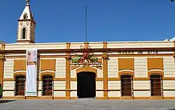 The State Government Palace is the most important civic construction from the 16th century. It has three sections. The east wing was known as the Casas Reales, the center Casas Consistoriales and the west wing as the Alhóndiga. The building is used for state government offices. The interior contain a number of murals by Desiderio Hernández Xochitiotzin, which depict the history of Tlaxcala.[4]
