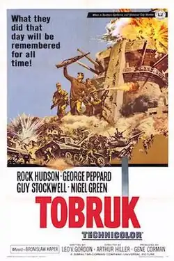Tobruk is a 1967 American drama war film directed by Arthur Hiller and starring Rock Hudson and George Peppard. The film was written by Leo Gordon (who also acted in the film) and released through Universal Pictures.