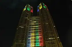 From 72% in March 2008,[30] Tokyo local support fell to 56% in May 2009,[31] the lowest support among the candidate cities. However, other polls conducted in early 2009 by some of the largest local publishers showed more than 70% support of the plan.[32] Tokyo had worked hard to increase the popularity of its bid,[33] even promoting the games on the Tokyo Tower and the Tokyo Metropolitan Government Building by displaying "Tokyo" and "2016" in the Olympic colors.[34]