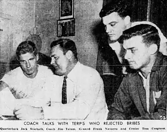 - ^ a b c d e Richard K. Tucker and Lawrence C. McDaniel, "Terp Stars Offered $1500 Bribe to Fix U of M Football Game," Baltimore Evening Sun, Oct. 29, 1952; pp. 1, 3.