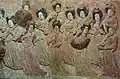 Painted on two marble reliefs, a group of servants and a fifteen-member ladies' orchestra.[2] It provides information about the musical tastes of the upper classes during the late Tang dynasty.
