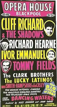 He continued to appear on variety bills throughout the 1960s, including appearing at the Opera House Theatre in Blackpool on a bill that included Cliff Richard and Richard Hearne. In addition, he appeared in musicals, including in a revival of Mr Tower of London (1949) and Where's Charley? in 1950,[5] a musical version of Charley’s Aunt. He continued to perform with his sister Gracie Fields, the last time in 1957 in Hughie Green's Saturday Spectacular. In 1962 he played the pantomime dame Widow Twanky in Aladdin at the Pavilion Theatre in Bournemouth opposite Adam Faith in the title role.[6]