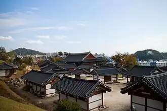 Tongyeong Samdo Sugun Tongjeyeong (Korean: 삼도수군통제영) is the official residence of the Samdo Sugun Controller of the Joseon Dynasty located in Munhwa-dong, Tongyeong, South Gyeongsang Province, South Korea, and is the headquarters of the Samdo Sugun. On February 20, 1998, it was designated as Historic Site No. 402 of the Republic of Korea,[1][2] but the name of the cultural property was changed to Tongyeong Samdo Sugun Tongjeyeong on July 28, 2011.[3]