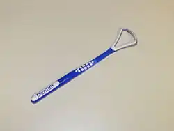 A tongue cleaner (also called a tongue scraper or tongue brush) is an oral hygiene device designed to clean the coating on the upper surface of the tongue. While there is tentative benefit from the use of a tongue cleaner it is insufficient to draw clear conclusions regarding bad breath.[1]