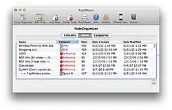 ![]() Screenshot from TopXNotes showing NoteOrganizer and two notes | |