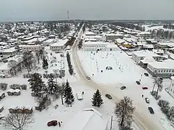 Torgovaya square is the central square of the Russian town of Ustyuzhna in Vologda Oblast. The square had appeared in the XVI-th century and since then was the center of the social and economic life of the city. In 1778 it was redeveloped according to the architectural plans of the Catherine II's commission and received a modern form. The building of the square was formed later — from the XIX-th to early XX-th centuries. Annual Trade fairs are held at the square.