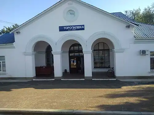 Toropylivka (Ukrainian: Торопилівка) is a railway station in Stepanivka, Sumy Oblast, Ukraine. The station serves as a minor passenger station as well as a major freight yard for nearby businesses in Stepanivka. It is on the Sumy Branch of Southern Railways on the Bilopillia-Basy line.
