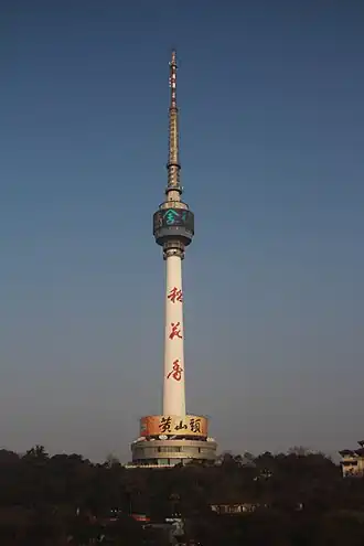 Tortoise Mountain TV Tower (Chinese: 龟山电视塔; pinyin: Guī Shān Diànshì Tǎ) is a 311.4 metres (1,022 ft) high TV Tower in Hanyang District, Wuhan, Hubei, China. It is a concrete tower equipped with an observation deck in a height of 221.2 metres (726 ft). It does not stand directly upon the hill, which is occupied by an ancient temple complex (Qing Chuan Ge (晴川閣) from the Three Kingdoms, Song, and Ming dynasties). Guishan TV Tower is China's first self-developed TV tower, opened in 1986.