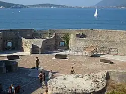 The fort was commissioned in 1513 by King Louis XII at the request of the bishop of Toulon and of the Senechal of Provence.[1] It was placed on the cap de la Manegue, at the end of the pointe de la Mitre, where it could fire at any ships coming into the Rade. The design was by the Italian engineer Gian-Antonio della Porta.[2] It was a classical example of a Torrioni, a round tower with cannon, constructed around Renaissance Italy in the 16th century. The tower was sixty meters in diameter and seven meters thick. Construction began in 1514 and was finished in 1524, during the reign of Francis I of France, at a cost of 30,000 florins. Because of its impressive size, the residents of Toulon called "La Grosse Tour."[1]