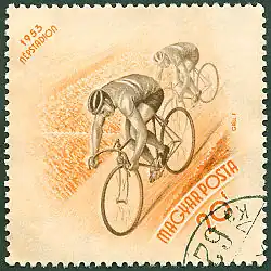 The sleeve design depicted the band on road bikes in a paceline, superimposed across an angled representation of the French national flag. The design was adapted from an image that had appeared on a 1953 Hungarian postage stamp, one of a sport-themed set commemorating the opening the Népstadion (People's Stadium) in Budapest. The piece was also included in the 1984 film Breakin', also known as Breakdance internationally. Although the song did appear briefly in the film, Kraftwerk did not let the song appear on the movie soundtrack; instead, a cover version of the song was released by a group called "10 Speed".