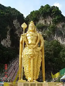 - Batu Caves, cave complex contains many Hindu temples, the most popular of which is a shrine dedicated to Tamil god Murugan with a 43 m (141 ft) high Murugan statue, one of the largest Murugan statues in the world, and the focal point of the Tamil festival of Thaipusam in Malaysia.