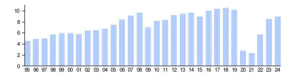 - ^ "Global and regional tourism performance". www.unwto.org. Retrieved 2025-06-22.