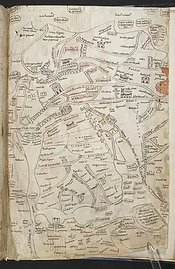 The Tournai maps, often known as the Jerome maps, are a pair of maps with Latin labels found in a single late 12th-century manuscript copy of Jerome's Latin translation of Eusebius's Onomasticon. One map depicts the Holy Land (Palestine) while the other depicts Asia. Although the preface of the Onomasticon refers to a map of the Holy Land, the 12th-century map cannot be a faithful copy of the original map.[1]