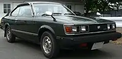 Released in Japan August 1977, the next-generation Carina was available in Germany in December 1977[12] and in other European countries during 1978.[3] The chassis was mostly the same as that of the facelifted late Carinas of the first generation; the Van versions actually continued to use the old TA16/19 chassis codes in spite of receiving the new bodywork as they retained the old Van's underpinnings.[13][14] In most markets Carinas were fitted with the same 1,588 cc 2T engine as its predecessor. In the Carina, an output of 75 PS (55 kW; 74 hp) DIN was claimed. The option of automatic transmission was new to many export markets. Japanese actor Sonny Chiba was the spokesman for the Carina in Japanese commercials for several decades.[15]