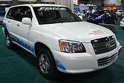 - 2002: The Highlander-based FCHV is available for limited sales in the U.S. and Japan. The fuel-cell stack outputs 90 kW. The cruising range is 300 km (185 miles). Two FCHVs are delivered to the Irvine and Davis campuses of University of California, four go to government departments in Japan.[27]