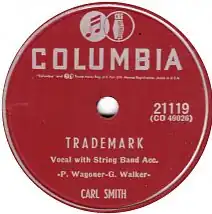 "Trademark" is a song written by Porter Wagoner and Gary Walker, performed by Carl Smith, and released by Columbia Records (catalog No. 21119). In July 1953, it entered Billboard magazine's country charts, peaked at No. 2 on the best seller chart (No. 5 juke box), and remained on the chart for 16 weeks.[1]