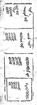 - ^ Walther Heissig (1989). Heilung durch Zettelschlucken. Die Mongolen. Vol. 2. Innsbruck. ISBN 3-7016-2297-3.