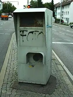 Fixed camera systems can be housed in boxes, mounted on poles beside the road, or attached to gantries over the road, or to overpasses or bridges. Cameras can be concealed, for example in garbage bins.[40]