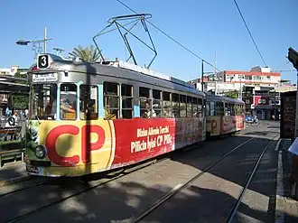 The fleet consists of 14 Urbos 2 trams, with five modules each and 100% low-floor, supplied by CAF for the opening of the Antray line in 2009.[6] In August 2015, Eurotem, a joint venture of South Korea’s Hyundai Rotem and Turkish company Tüvasaş, won an order for 18 new trams, required because of the extension of the tram line.[7]