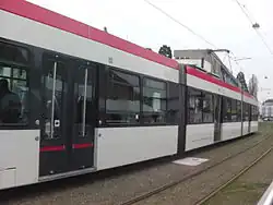The Freiburg im Breisgau tramway network (also known as Stadtbahn or formerly as Hoobl (Alemannic for Hobel))[1] is a network of tramways that forms part of the public transport system in Freiburg im Breisgau, a city in the federal state of Baden-Württemberg, Germany. Established in 1901, the network has been operated since its foundation by the company now known as Freiburger Verkehrs (VAG Freiburg or VAG), and powered by electricity. The tramway network currently has five lines. The expansion of the tram network since 1980 has served as an example of the "renaissance of the trams" in Germany. As of 2023, 73 trams were available for regular use: 2 of these were high-floored, 36 partial and 35 low-floored.[2][3] Almost the entirety of the network is located within Freiburg's urban area; only a few metres of the balloon loop at Gundelfinger Straße are located outside the boundary of Gundelfingen to the north of Freiburg. In total, the trams serve 20 out of the 28 districts in Freiburg.