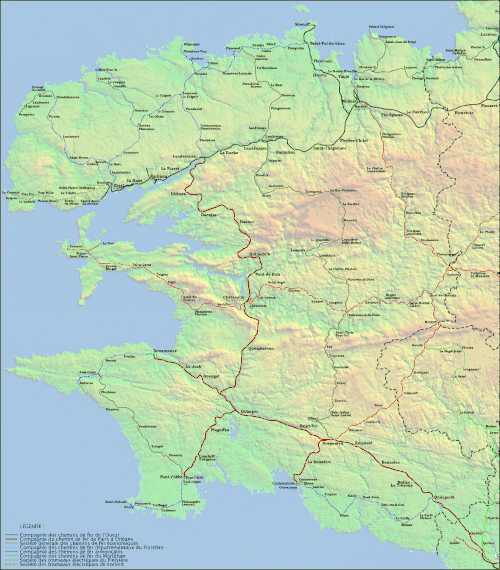 The first section of line, between St. Pierre-de-Quilbignon and Le Conquet opened on 12 July 1903. It replaced a three-horse omnibus known as l'Hirondelle (The Swallow), which had made just one return journey between Le Conquet and Brest daily. The engineer of the line was a M. Calvé.[1] Over 12,000 passengers were carried in the first twenty days of operation. There were three main reasons the line was built. Firstly, to give the citizens of Brest access to the beaches at Ste. Anne-de-Portzic. Secondly, to enable the easy shipment of food to Brest. Thirdly, for military purposes in the event of an invasion.[2]