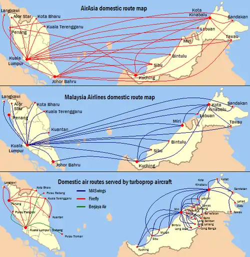 Malaysia has 62 airports, of which 38 are paved. Malaysia Airlines, as the national carrier, offers extensive international and domestic routes. Major international routes and domestic routes crossing between West Malaysia and East Malaysia are served by Malaysia Airlines, AirAsia, Firefly, and Batik Air Malaysia while smaller domestic and regional routes are supplemented by smaller airlines like MASwings, Firefly and SKS Airways. Cargo airlines such as MASkargo, Teleport, World Cargo Airlines, Kargo Xpress, and Raya Airways play a crucial role in enhancing connectivity between West and East Malaysia and Malaysia to the world.